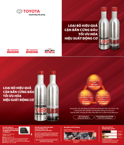 Hiểu được điều đó, các kỹ sư Toyota đã nghiên cứu và cho ra đời sản phẩm “Dung dịch súc rửa động cơ xăng” . Dung dịch sẽ làm phân rã các cặn bẩn bám dính bên trong động cơ, đáy các-te và hấp thụ các cặn bẩn này trong dầu để xả chúng ra ngoài. Đặc biệt, với đặc tính tẩy rửa mạnh mẽ nhưng không chứa bất kỳ thành phần dung môi nào, “Dung dịch súc rửa động cơ xăng” sẽ không làm tốn hại đến gioăng phớt động cơ, kể cả đối với động cơ của những xe cũ.