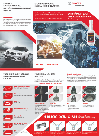 Hãy sử dụng “Dung dịch làm sạch kim phun” chính hiệu của Toyota để phục hồi và duy trì hiệu suất cho chiếc xe của bạn.
